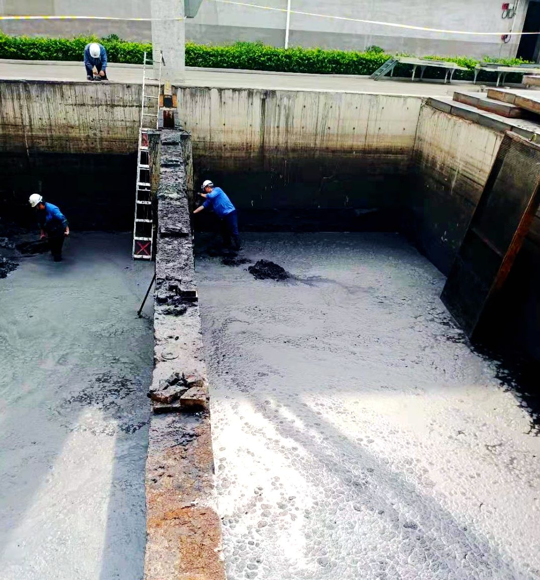 因循環(huán)水系統(tǒng)運行時間較長,造成循環(huán)水池內積存大量淤泥,清淤時只能一桶一桶往外清運,生產一班合理分工,兩人一組,一人在池內清理另一人在池外提運,配合默契,不分你我。